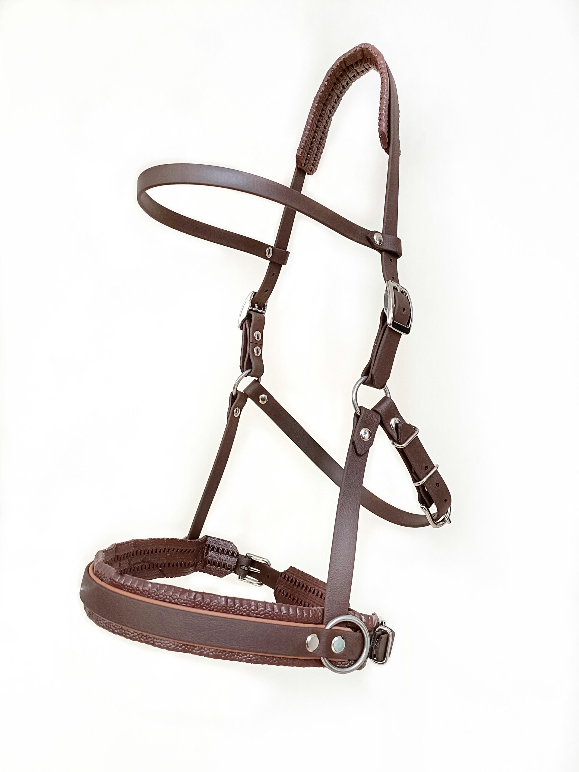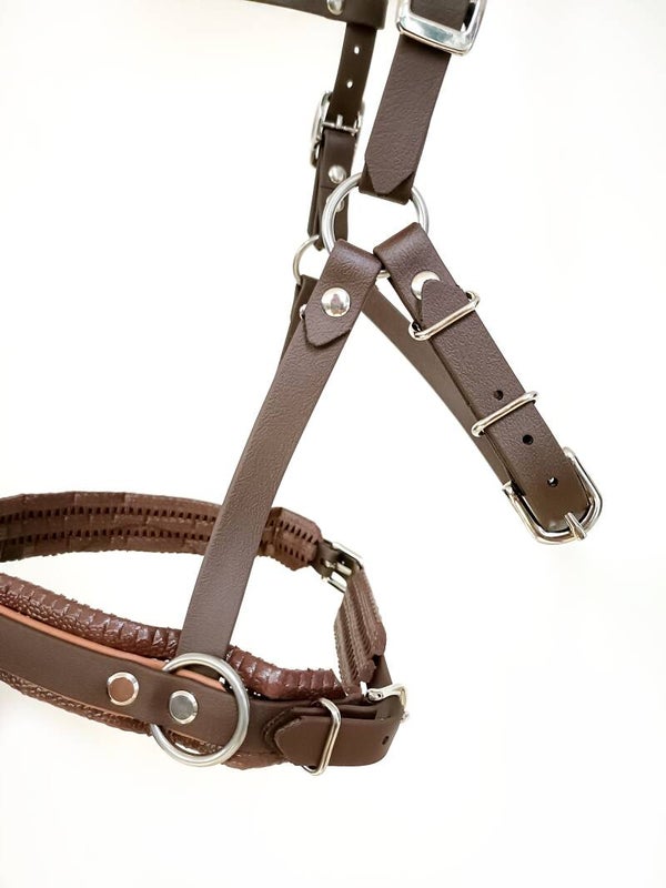 Het zachte sympanova onder het neus -en kopstuk kan gekozen worden in zwart of bruin. In de toekomst hopen we meer kleuren beschikbaar te krijgen hiervoor!