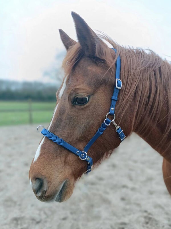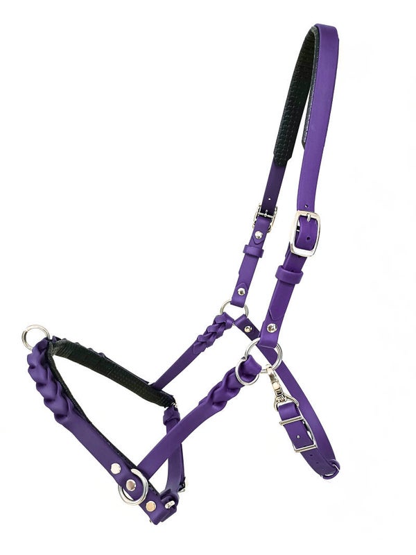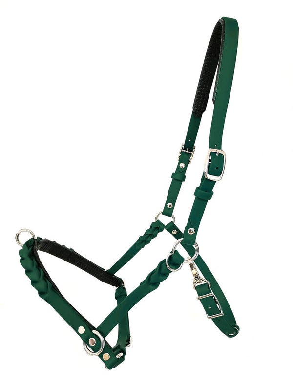 Chique, eigentijds en volledig Biothane gemaakt kaptoom. Dit stoere kaptoom is gemaakt van 16mm. breed Biothane met een gevlochten neusstuk met zachte foam onderlegging & gevlochten details aan de baksfukken. Standaard gemaakt met sidepull ringen en 1 ring bovenop het neusstuk.