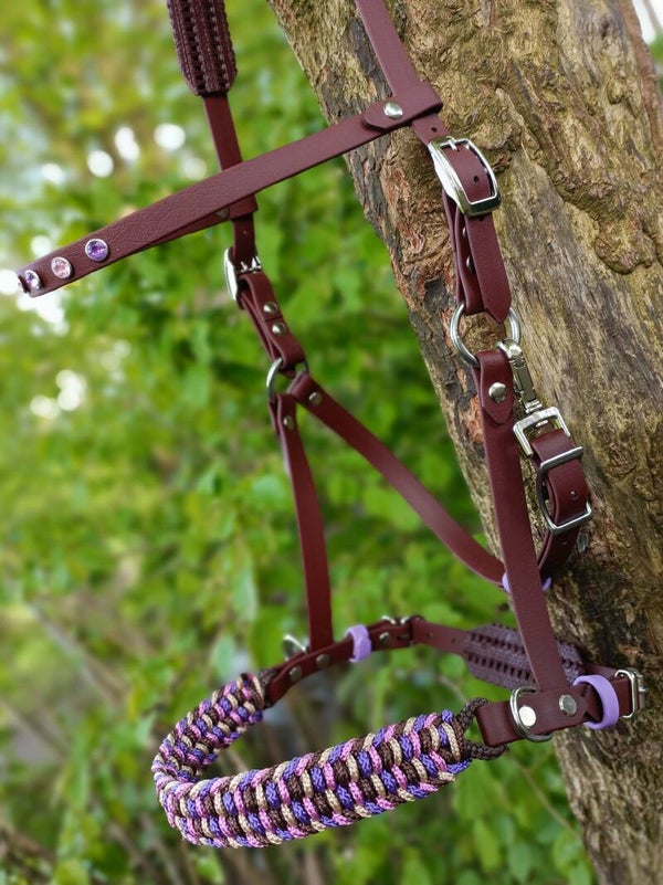 Het enige ontbrekende sidepull hoofdstel is er dan eindelijk, Biothane met touw gecombineerd! Dit fijne hoofdstel is grotendeels gemaakt van Biothane met een Mahora gevlochten neusstuk.