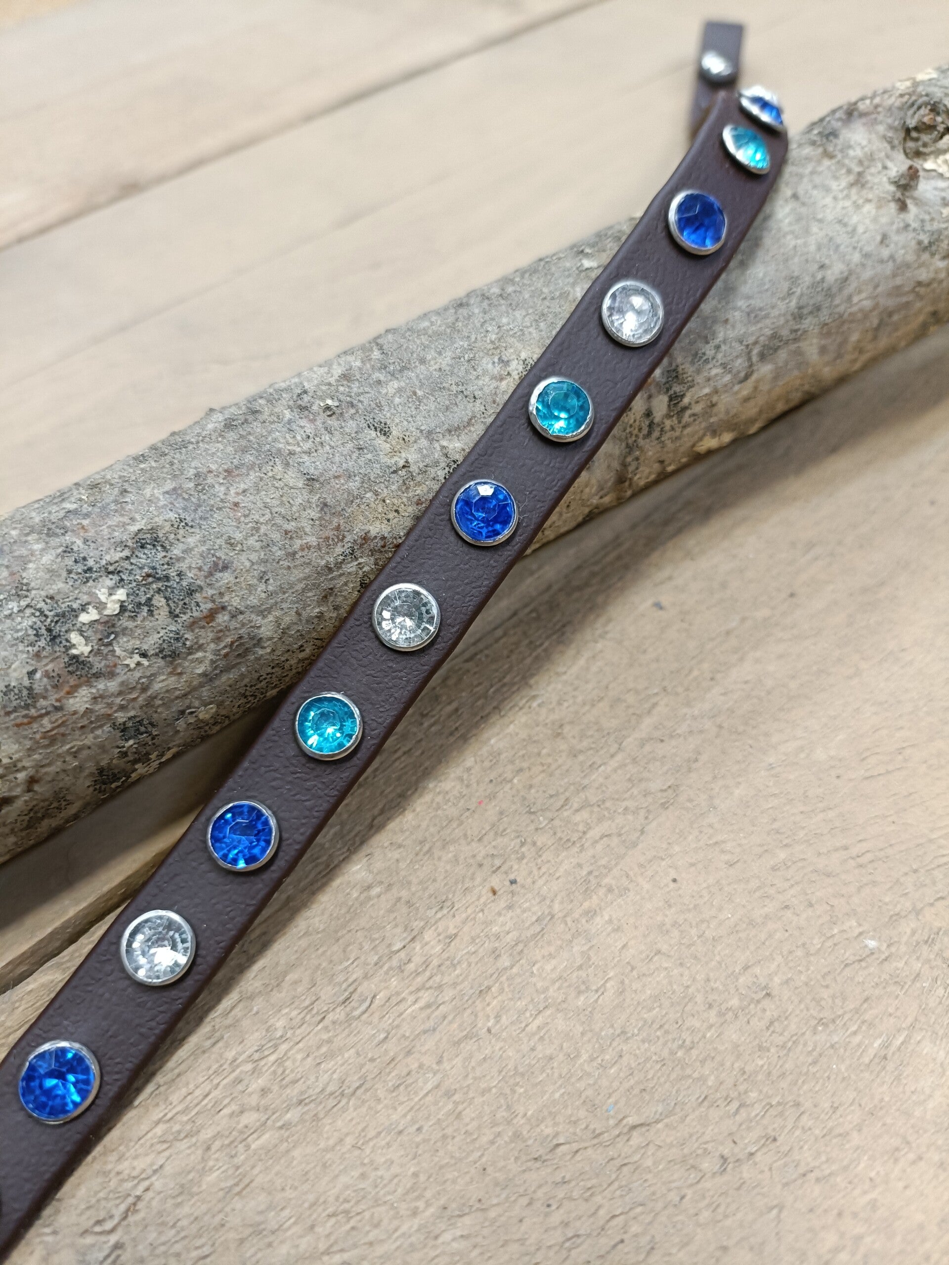 Frontriem gemaakt van Biothane met crystal steentjes in kleuren naar keuze.