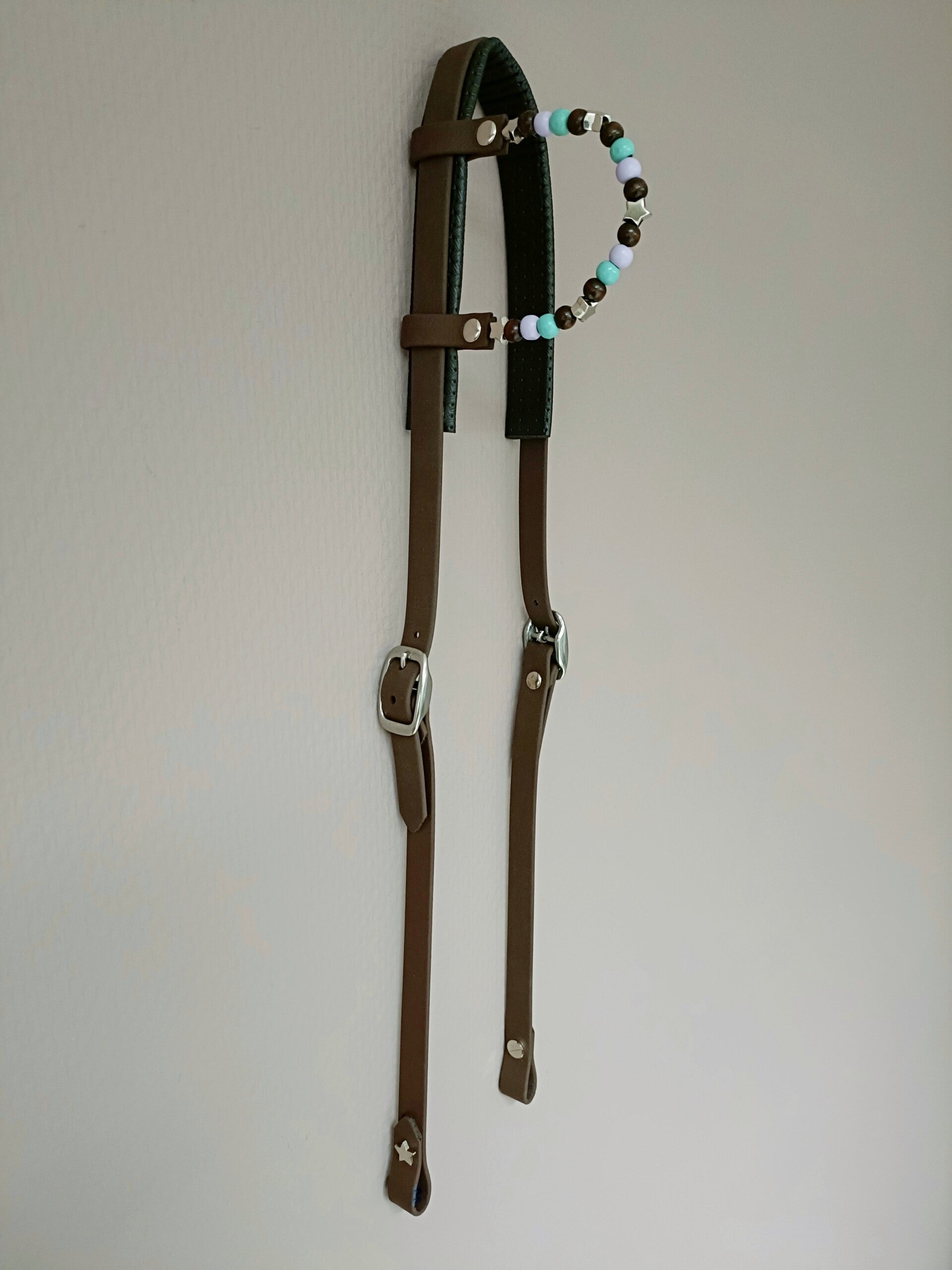 Biothane one ear hoofdstel met zacht foam achter de oren en een prachtige bijpassend one ear piece! De sterren details maken dit een uniek hoofdstel met subtiele details.