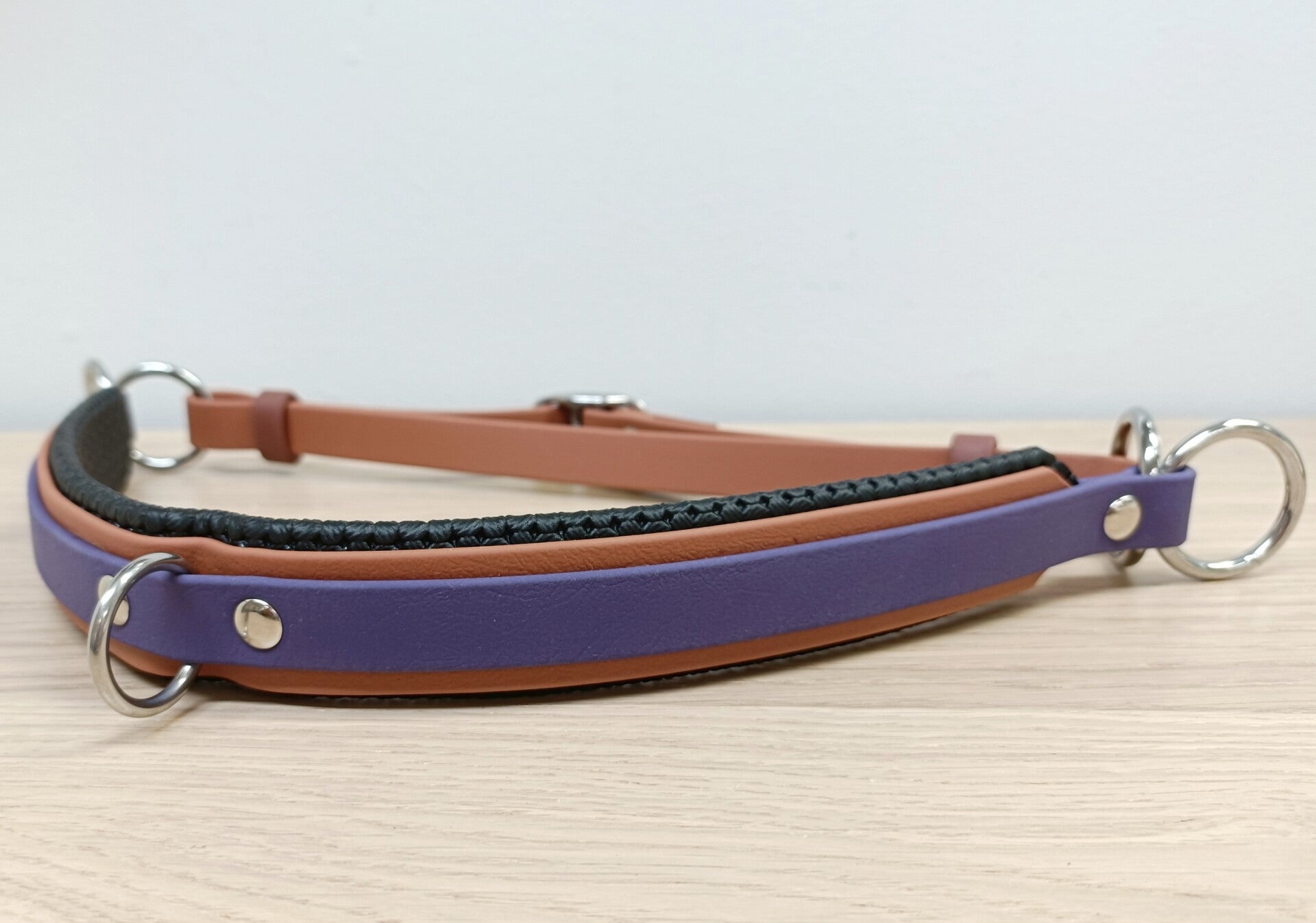 Standaard wordt deze neusriem gemaakt als sidepull neusriem en is er de optie om kaptoomringen toe te voegen.